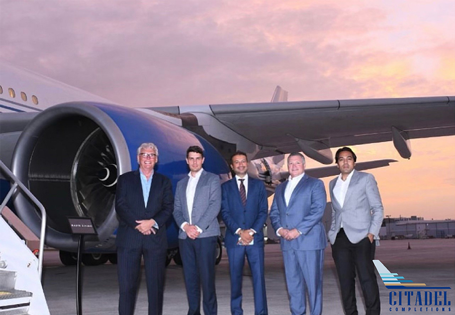 Citadel Completions partners with Airbus Corporate Jets (ACJ) for a stunning private event onboard a luxurious A340 VVIP aircraft in Miami, Florida. In cooperation with the prestigious French cognac LOUIS XIII and Haute Living, a group of select VIPs savored a cognac tasting and a full course fine dining experience onboard the A340 in its incredible dining room. The guests were given guided tours of the expansive 3,000 plus square feet of bespoke interiors and witnessed firsthand the advantages of private large aircraft ownership. This collaborative effort embodied Citadel’s commitment to extreme customer service and was definitely a night to remember!