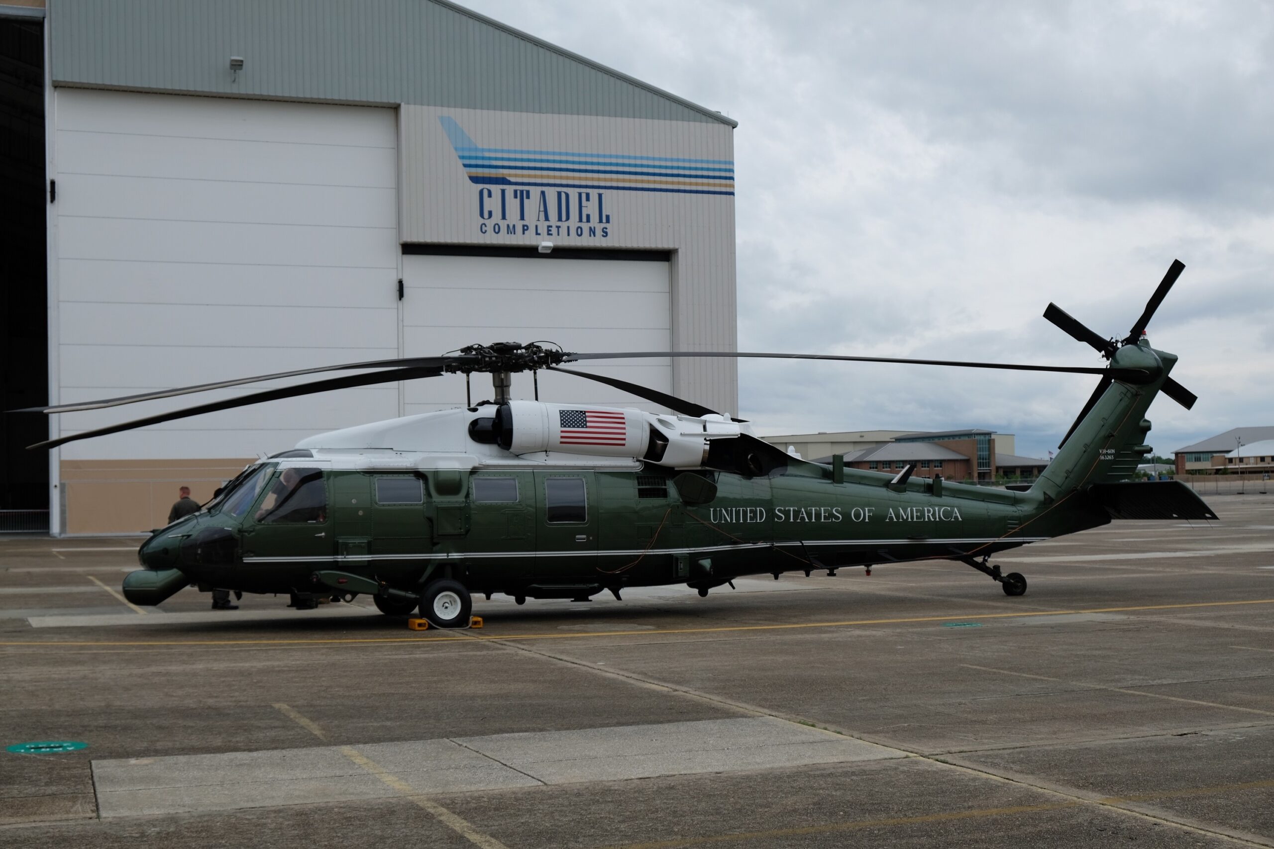 Lake Charles, Louisiana – Citadel Completions was recently honored to host a U.S. Marine Corps VH-60N “White Hawk” helicopter in conjunction with a visit to Southwest Louisiana by President Donald J. Trump. Ahead of the President’s pre-planned arrival, Citadel’s primary hangar was the temporary home for the VH-60N, as well as several Presidential motorcade vehicles and accompanying U.S. Secret Service and U.S. Marine personnel. On May 14, 2019, President Trump landed at Chennault International Airport aboard Air Force One, and was then transported by motorcade to a local liquid natural gas facility where he spoke about future domestic job creation and energy infrastructure. The VH-60N and its crew remained on standby in the Citadel hangar. President Trump returned by motorcade, waving at Citadel team members as he drove by the hangar, and departed on Air Force One as planned.